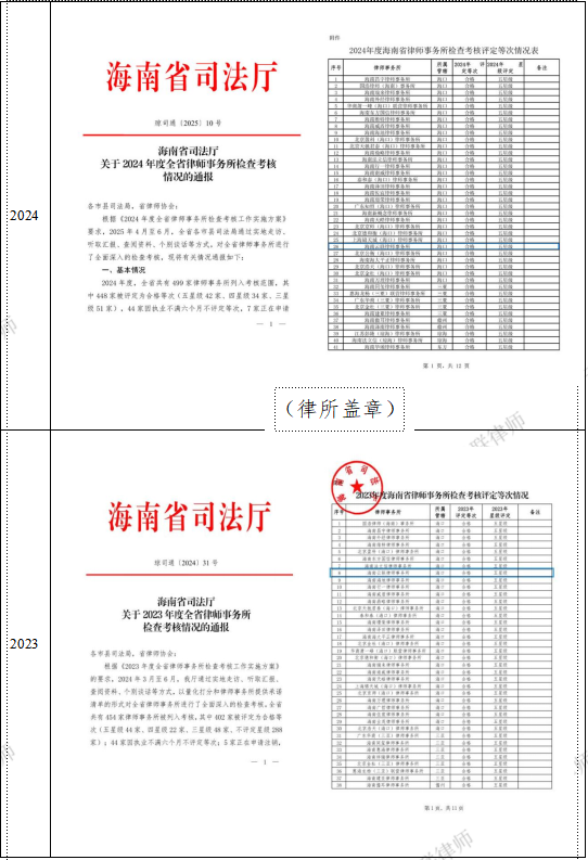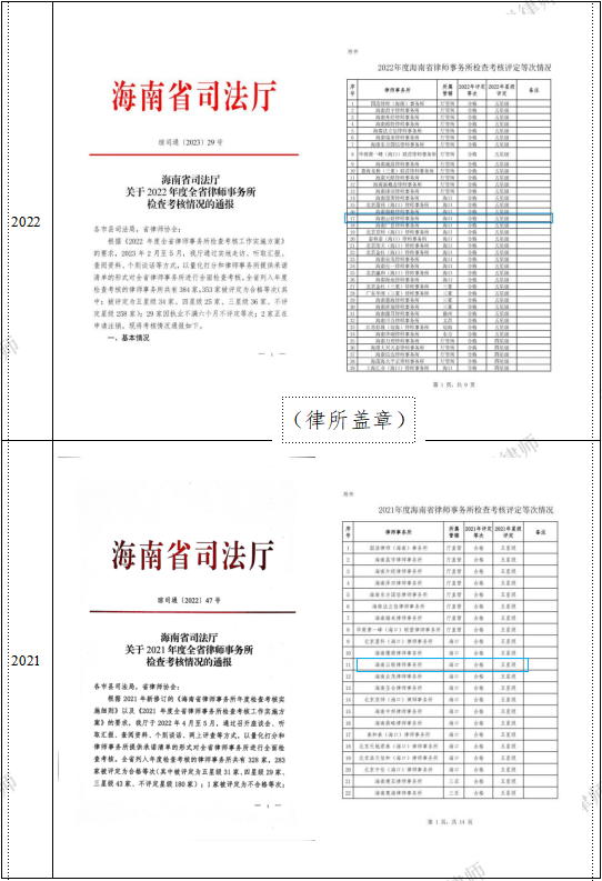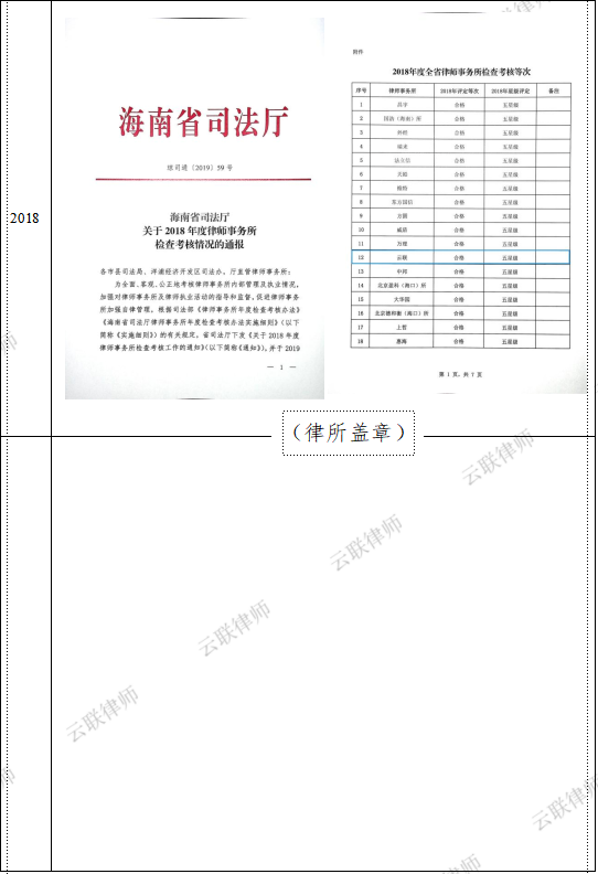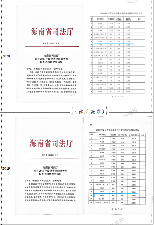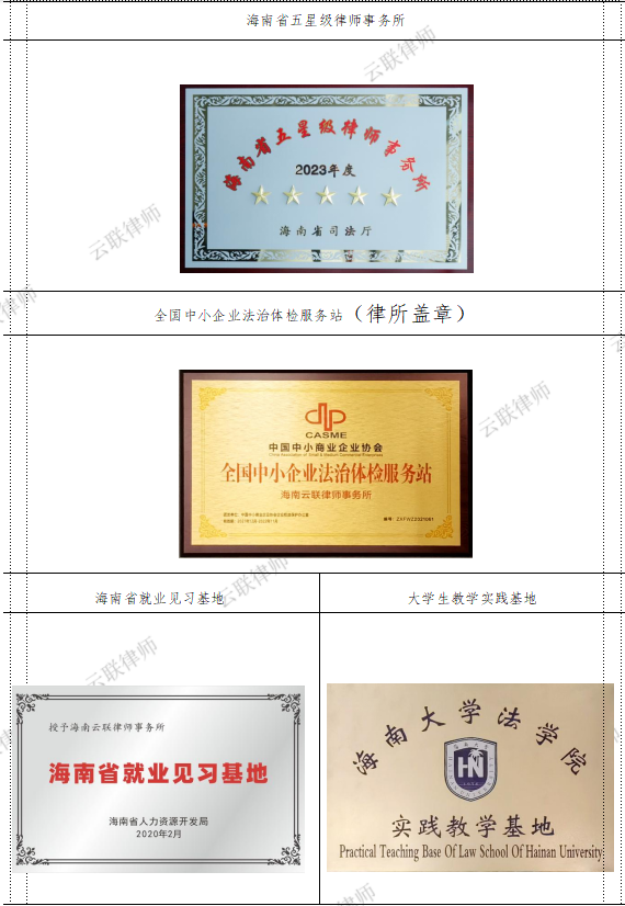 2022年6月28日,云联律所连续四年获得海南省“五星级”律所荣誉称号。